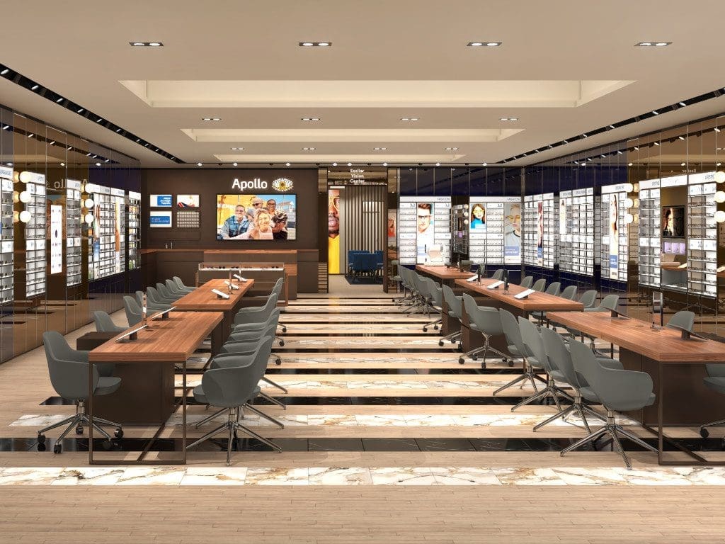 Der neue Flagshipstore ist Teil des globalen Roll-outs des Apollo-Mutterkonzerns EssilorLuxottica und besteht aus einem einzigartigen Konzept, das für ausgewählte Stores in Top-Lagen entwickelt wurde. Die Kunden erwartet ein edles italienisches Designkonzept, modernste Technik und eine exklusive Luxury Area, die Luxusmarken und -produkte präsentiert. Für den Store an der Zeil hat Apollo ein spezielles Sortiment zusammengestellt, das auf einer LED-Wall über die ganze Fassadenlänge illuminiert wird.
