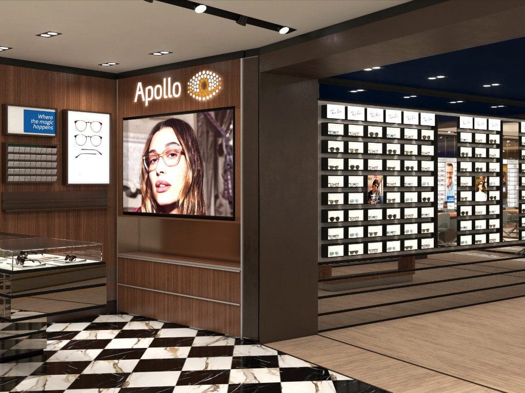 Der neue Flagshipstore ist Teil des globalen Roll-outs des Apollo-Mutterkonzerns EssilorLuxottica und besteht aus einem einzigartigen Konzept, das für ausgewählte Stores in Top-Lagen entwickelt wurde. Die Kunden erwartet ein edles italienisches Designkonzept, modernste Technik und eine exklusive Luxury Area, die Luxusmarken und -produkte präsentiert. Für den Store an der Zeil hat Apollo ein spezielles Sortiment zusammengestellt, das auf einer LED-Wall über die ganze Fassadenlänge illuminiert wird.