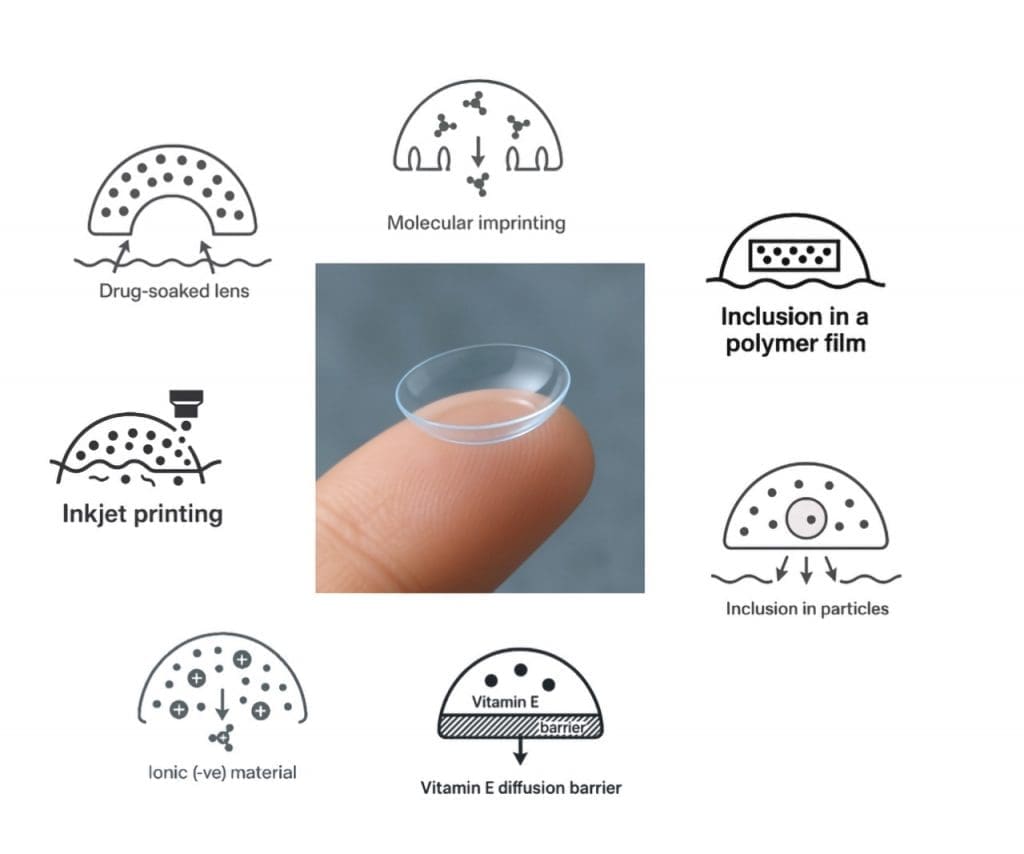 Mit Tintenstrahl gedruckte Wirkstoffschichten lassen sich gut in moderne Linsenherstellungsprozesse integrieren und ermöglichen eine präzise, räumlich kontrollierte Dosierung und nicht-invasive Überprüfung der Wirkstoffmenge, was einen großen regulatorischen Vorteil darstellt.26