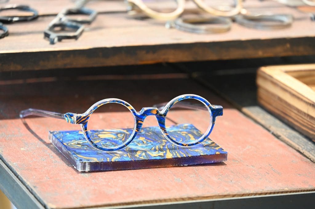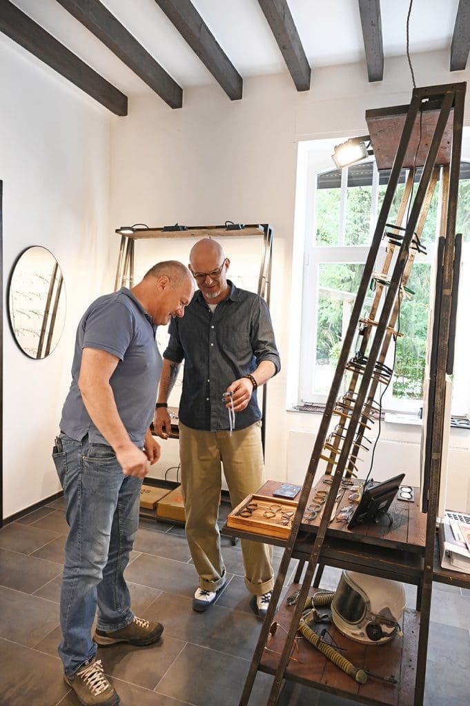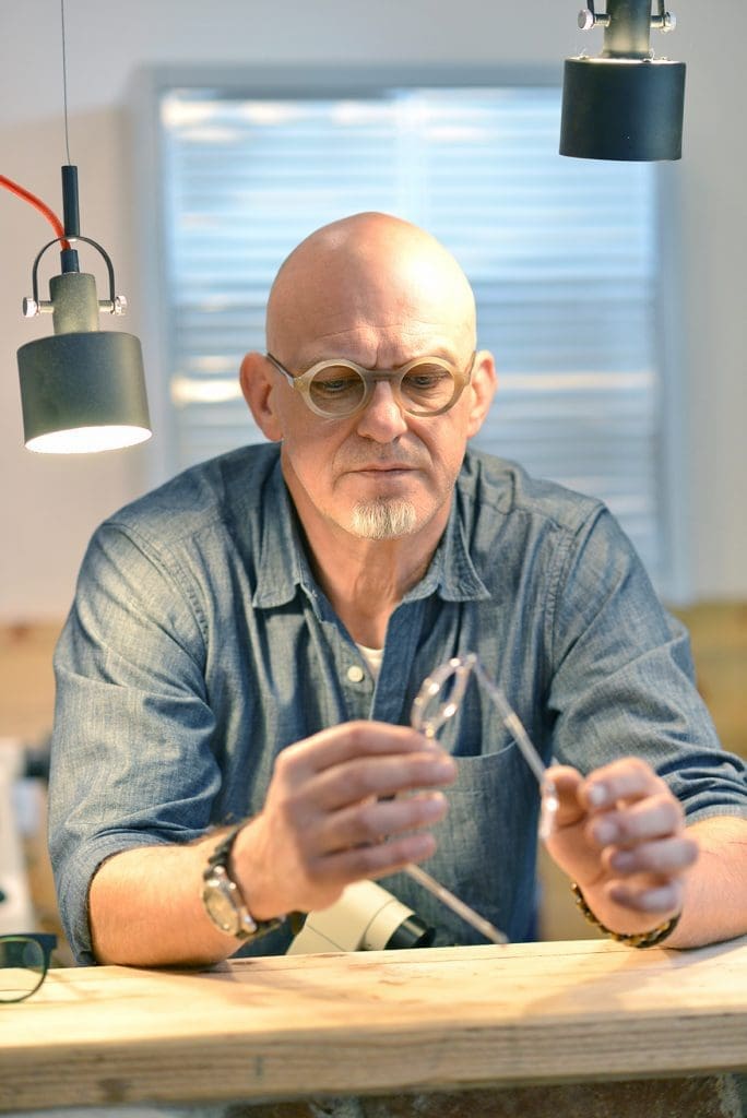 Eine kleine Ausstellung seiner eigenen Brillenkreationen hat er, doch „sind sie da, sind sie auch meist schon wieder weg“, verrät er uns. „Als Stimuli wecken sie natürlich Begehrlichkeiten, sei es aufgrund des besonderen Materials, deren Einzigartigkeit oder durch die Liebe zur Handwerkskunst.“ Es gebe verschiedene Gründe, warum ein Kunde genau ein bestimmtes Fassungsmodell haben möchte.