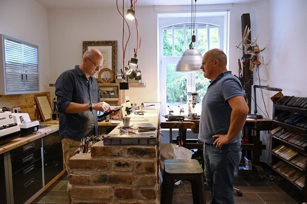 „Ah, Sie haben den Klingelknopf gefunden“, lautet die Begrüßung von Markus Zimmermann mit einem Augenzwinkern. Denn die neue Hightech-Signalanlage mit Fingerabdruckscanner scheint so manchen Kunden noch zu überfordern. Während in der Stadt die Augenoptiker ihre Türen weit offenhalten, erhält hier Eintritt, wer zuvor geschellt hat. Und das ist auch gut so, die meisten kommen ohnehin mit Termin zu ihrer ganz individuellen Beratung.
