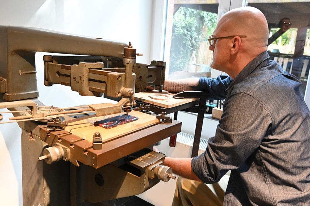 Denn Zimmermann‘s Brillen-Werk liegt ein ganzes Stück außerhalb des historischen Ortskerns von Stolberg. Die ehemalige Stolberger Straßenbahnstation am Waldrand gibt der Manufaktur auf rund 85 m² ein unvergleichliches Zuhause. Hier lebt der kreative Augenoptiker seit fast 30 Jahren nebenan. Seit sieben Jahren arbeitet er auch hier. Ein Faible für die Herstellung von Brillenfassungen hatte er schon vor der Lehre. In einem Praktikum bei einem Aachener Augenoptiker in der 80er Jahren fertigte er eine Lupe an, die seinen späteren Lehrherren davon überzeugte, diesen jungen Mann in sein Geschäft zu holen.