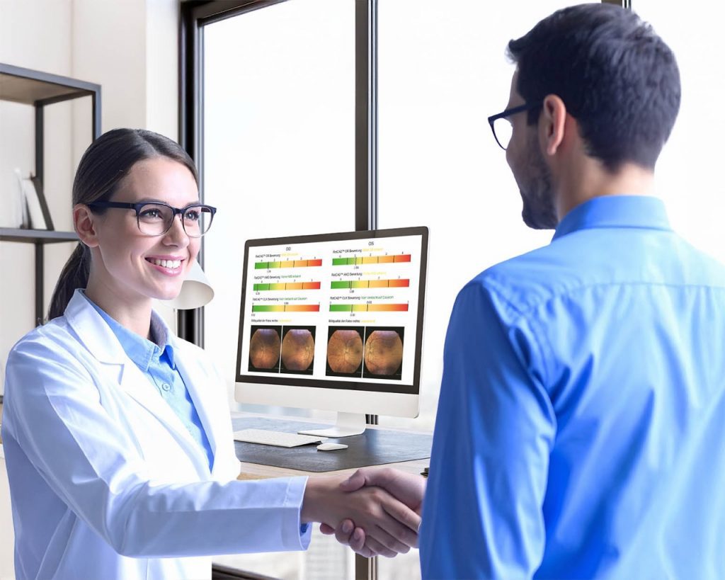 Retinalyze steht in diesem Marktvergleich für einen klar softwarezentrierten Hybridansatz. Die Plattform kombiniert KI-basierte Screening-Algorithmen für Fundusbilder und OCT-Scans mit optionaler telemedizinischer Unterstützung durch Augenärzte. Damit verbindet das Modell automatisierte Voranalyse mit menschlicher Rückversicherung, ohne den Betrieben einen festen Versorgungsweg vorzugeben. Gerade die konsequente Geräteoffenheit macht den Ansatz für unterschiedlich aufgestellte Augenoptikbetriebe interessant.