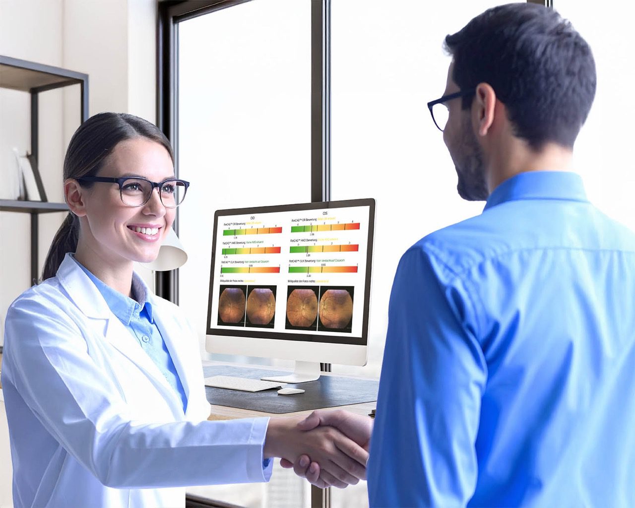 Auswertung: KI-basiert, augenärztliche Rückversicherung über Partnernetzwerk oder lokale Fachärzte optional
