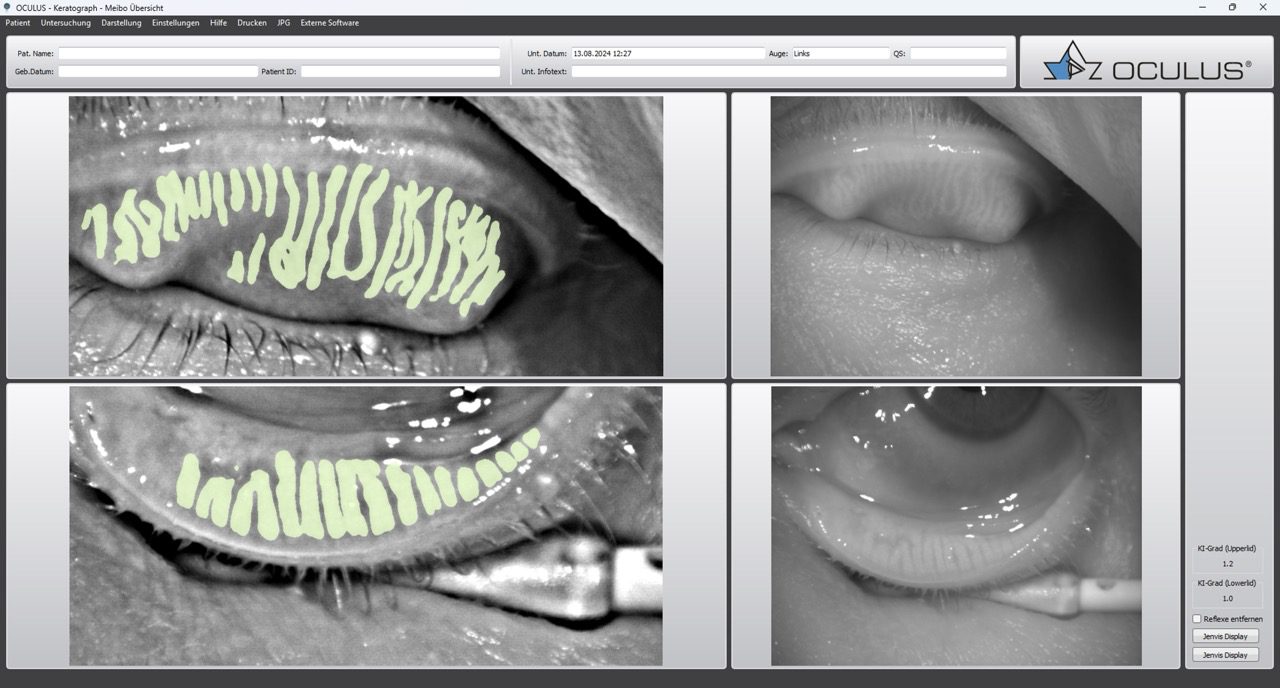 Oculus zeigte auf der Opti 2026, wie breit Screening heute in der Augenoptik aufgestellt sein kann – vom Trockenen Auge bis zur Netzhautaufnahme. Im Vordergrund steht der Keratograph 5M, der sich seit Jahren als zentrale Plattform für die Analyse des Tränenfilms etabliert hat. Neu hinzu kommt eine KI-gestützte Meibographie-Auswertung (Meibo AI), die strukturelle Veränderungen der Meibom-Drüsen standardisierter klassifizieren und damit die Beurteilung bei Dry-Eye-Patienten konsistenter machen soll. Nach DEWS III zählt die Meibographie heute zu den zentralen Verfahren der MGD-Beurteilung. Ergänzt wird dies durch den JENVIS Dry-Eye-Report, der Verlaufskontrollen und die Kommunikation im Beratungsprozess unterstützt.