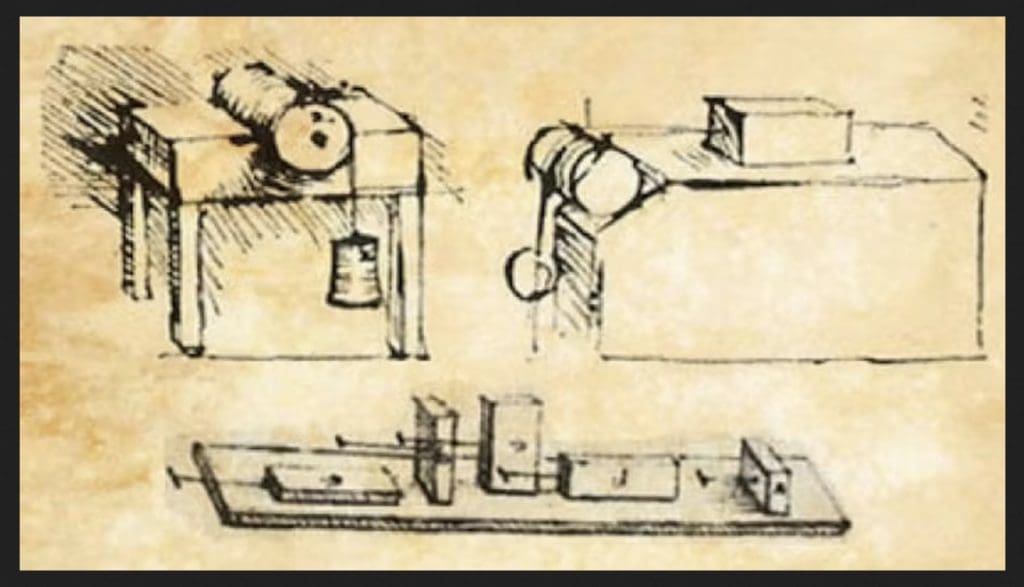 Man könnte meinen, dies sei etwas Neues, aber das ist nicht der Fall. Die Wissenschaft hinter den Scherkräften ist bekannt und es gibt sogar ein Wort dafür: Tribologie. In der Wikipedia-Definition dieses Phänomens heißt es: „Tribologie ist die Wissenschaft und Technik, die sich mit dem Verständnis von Reibungs-, Schmier- und Verschleißphänomenen bei wechselwirkenden Oberflächen in relativer Bewegung befasst“. Genau das ist die Situation bei einer Kontaktlinse auf der Augenoberfläche. Vielleicht ist das sogar noch überraschender: Leonardo da Vinci beschrieb bereits ein Instrument zur Messung dieser Kräfte (Abbildung 1) auf eine einfache, aber ähnliche Weise.