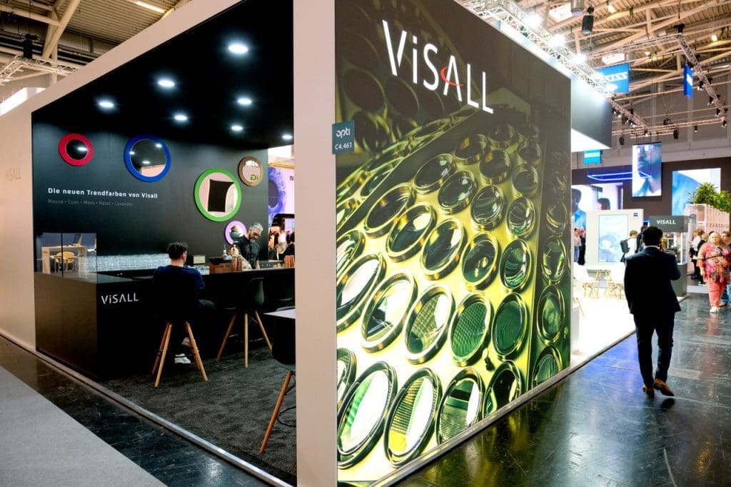 Ein solcher Brillenglashersteller ist Visall. Das Unternehmen aus Lörrach hatte mehrere Produktneuheiten passend zur Messe dabei, wie seine Pro I-DNA Office-Brillengläser, die an verschiedene Monitor-Arbeitsplatzsituationen anpassbar sind. Hierbei sorgt eine VR-Brillen-Technologie für eine Analyse der individuellen Blick- und Augenbewegungen. Die Entwicklung des Freeform-Bildschirmglases berücksichtigt die horizontale und vertikale Blick- und Kopfausrichtung in verschiedenen Sehentfernungen ebenso wie die Augen- und Kopfbewegungen in einer VR-Arbeitsplatzsimulation vor einem oder mehreren Bildschirmen. Dank der Morphing Technology wird das Glasdesigns auf der Grundlage des persönlichen Sehprofils erstellt, das dann in die Produktion einfließt. Auch neue Farben wie Mauve, Lavender oder Cyan sollen Augenoptikern nun eine noch breitere Palette verschaffen, um modebewusste Kunden anzusprechen.