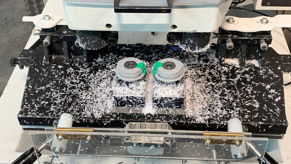 Eine logische Konsequenz für das Unternehmen und Motivation zugleich ist es, nach dem langjährigen Erfolg im Vertrieb, nun auch selber Brillen zu bauen. Schon an den zahlreichen auf Nachhaltigkeit ausgelegten firmeninternen Projekten, die oft auch ein eigenes handwerkliches Gespür und Know-how erfordern (Stichwort: upgecycelte Kaffeeküche von Mitarbeitern für Mitarbeiter aus alten Hochbeeten gebaut, als eines der neusten Projekte), lässt sich erahnen: Hier könnte tatsächlich zusammen kommen, was zusammen gehört. Mit den eigenen Händen anpacken ist in der Firmenphilosophie verankert und wird hier schon länger praktiziert. Zur Unterstützung wurden 28 Maschinen aus der Nachkriegszeit angeschafft, mit denen, „wenn es mal gut läuft“, rund 200 Brillen pro Tag produziert werden sollen. Hierbei handelt es sich um Drehstromautomaten mit einfacher Kopierfrästechnik sowie Maschinen für die weiteren Fertigungsschritte Formen, Fräsen etc. Das macht neugierig – und macht auch live Spaß.