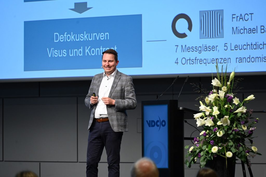 Dr. Oliver Kolbe berichtete aus der stationären ophthalmologischen Rehabilitation und zeigte, wie optometrische Methoden Patienten mit Gesichtsfeldausfällen unterstützen können. Loreen Roth ergänzte mit spannenden Erkenntnissen zur Stereopsis und deren Einfluss auf die Raumwahr­nehmung. Zum Abschluss widmete sich Prof. Dr. Dr. Ludwig Heindl seltenen, aber potenziell malignen Irisläsionen. Sein Vortrag unterstrich die Bedeutung moderner Diagnose- und Therapiewege in der interdisziplinären Zusammenarbeit.
