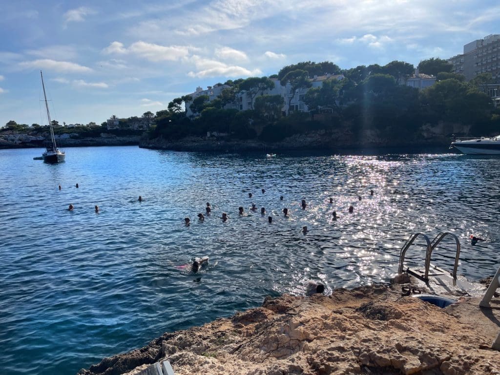 Wenn früh am Morgen das erste Licht über den Pinienkronen der Cala Serena hervorkommt, sind schon einige Frühaufsteher unterwegs: Im Sportoutfit, noch etwas ungelenk, den Schlaf in den Knochen und die müden Augen hinter einer passenden Sportsonnenbrille versteckt, geht es vorbei an noch feuchten Rasenflächen durch den Park unter eine Gruppe von Palmen und Pinien.