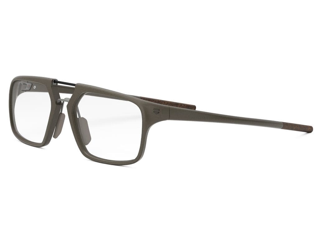 Die Brille kombiniert technische Materialien wie Dyneema, Bio-Nylon und Titan mit einem doppelten Steg und Korkelementen.