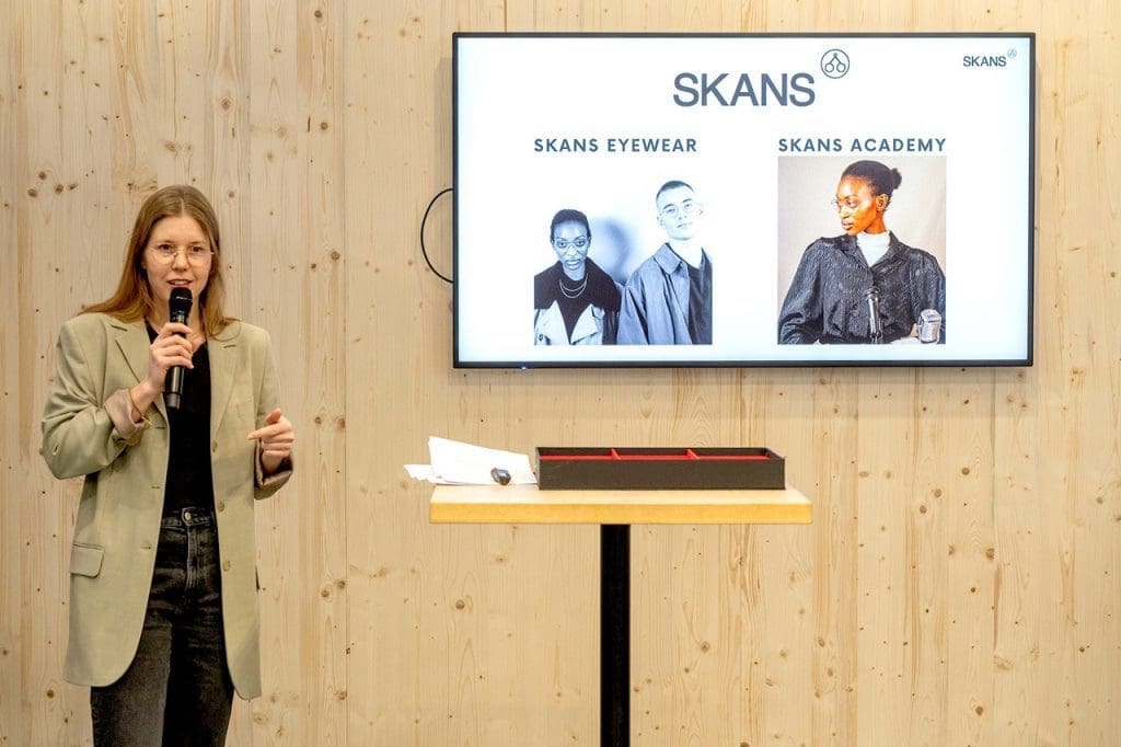Die Verleihung des Awards feierte dieses Jahr Premiere, der Sustainability Hub sorgte aber schon im Jahr zuvor für spannende Diskussionsrunden und Vorträge, darunter viele von Mitgliedern der IG Nachhaltigkeit gehalten. Auch dieses Jahr vertraten sie das Thema Nachhaltigkeit aus Sicht der Branche. Matthias Köste (Pricon) berichtete beispielsweise über die Fortschritte des Stützscheiben-Projekts der IG, Niklas Warda (Wardakant) und Reinhard Müller (Optik Müller) über Filtersysteme in der Werkstatt. Unter den Vortragenden war auch die Gewinnerin des dritten Opti Box-Awards Johanna Skans mit ihrem Thema Slow-Fashion. Die Gründerin von Skans stammt aus Schweden und ist Augenoptikerin in zweiter Generation. Nachhaltigkeit ist ihr Lebenselixier: Sie hat in Cambridge Business Sustainability Management studiert, internationale Praxiserfahrung sammelte sie in Australien.