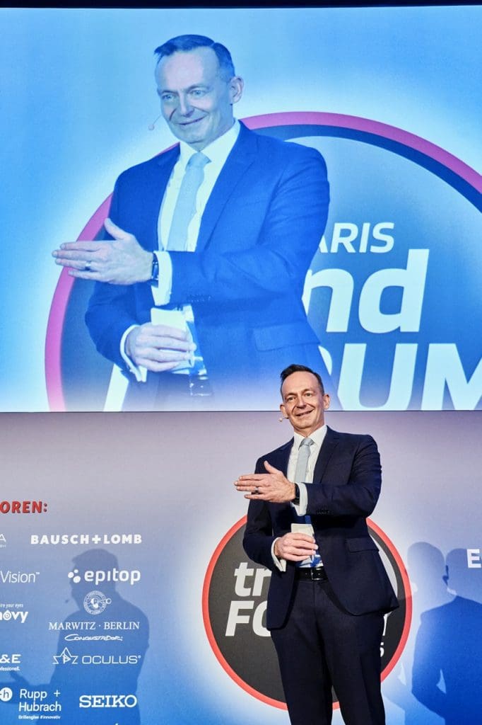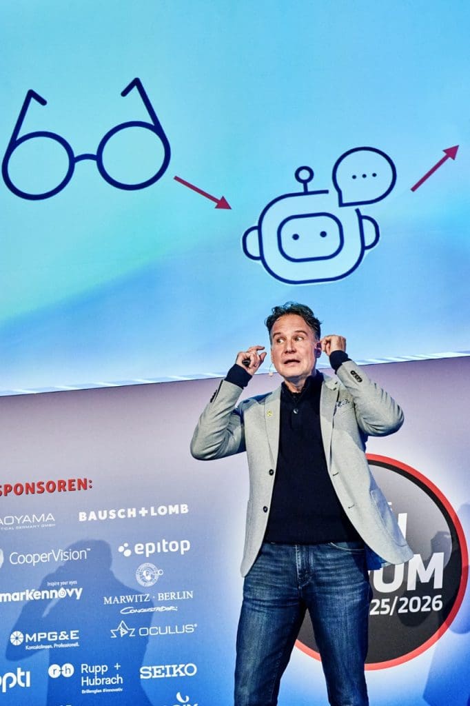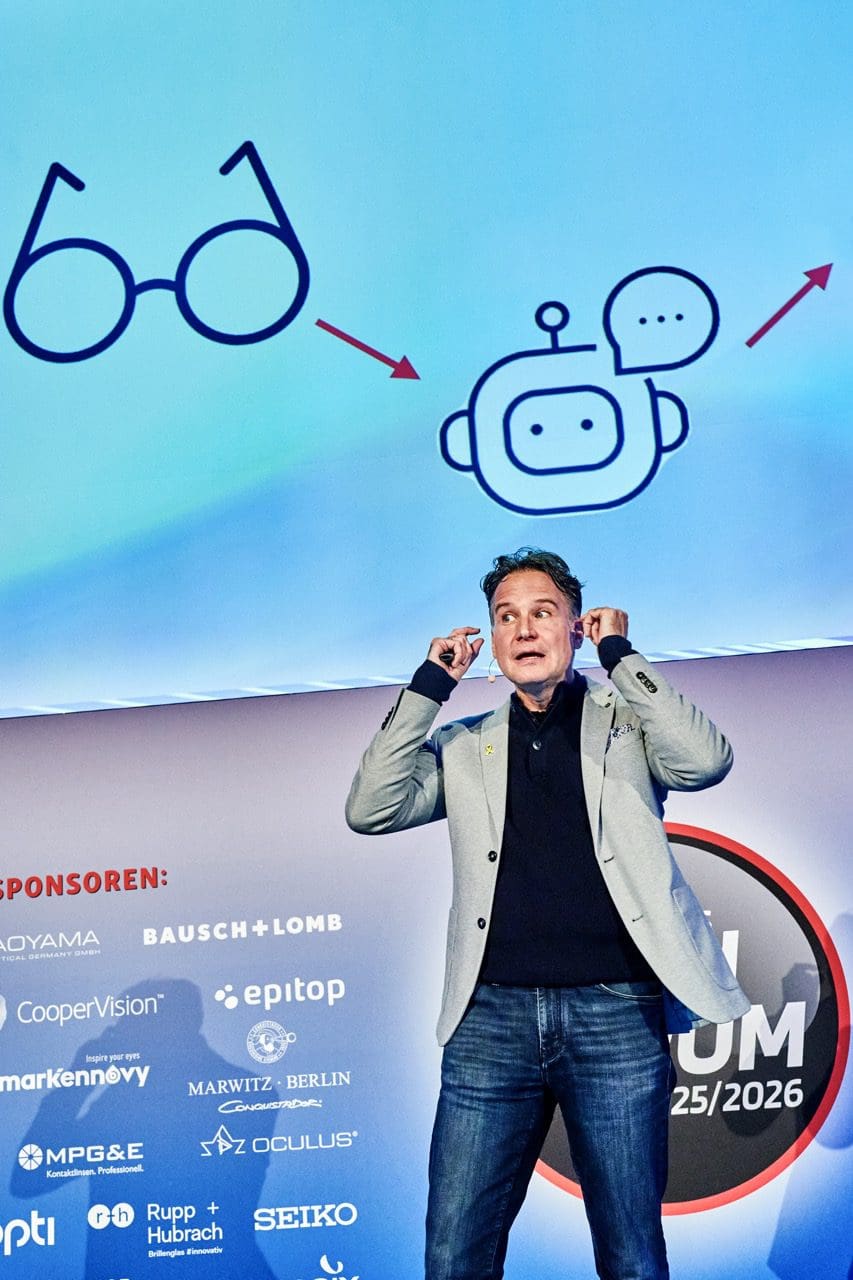 Nach einer Kaffee-Pause und einem kleinen Vortrag zur allgemeinen Lockerung ging es über zu den fachlicheren Themen der augenoptischen Welt. Die Messechefin der Opti Cathleen Kabashi gab gemeinsam mit Tobias Gröber, dem CEO der GHM Gesellschaft für Handwerksmessen und Veranstalter der Messe, einen Ausblick auf die Opti im Januar 2026. Dabei wurde schnell klar: Es erwarten uns auch viele neue Konzepte in den Messehallen.