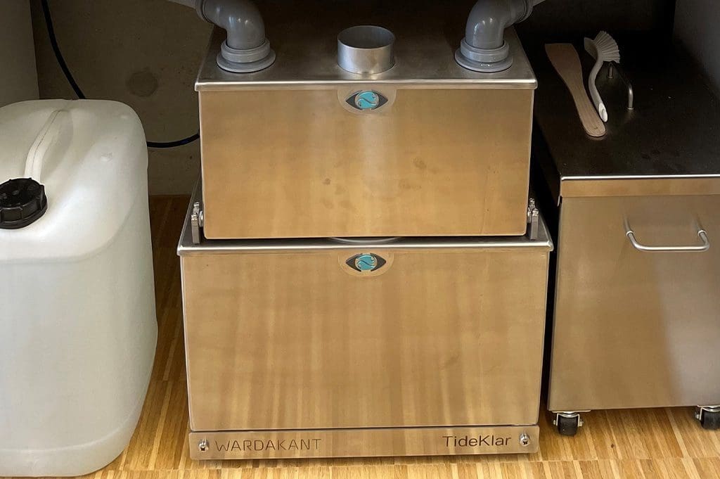 Das am häufigsten verwendete Filtersystem stellt die TideKlar der Firma Wardakant dar: Sie kommt in 44% der Betriebe zum Einsatz (Anm. d. Red.: Es handelt sich nicht um eine repräsentative Umfrage). Die TideKlar, welche in Abbildung 6 zu sehen ist, kann an fast jeden Schleifautomaten angeschlossen werden und während des Schleifvorgangs kleinstes Mikroplastik vom Prozesswasser trennen.3