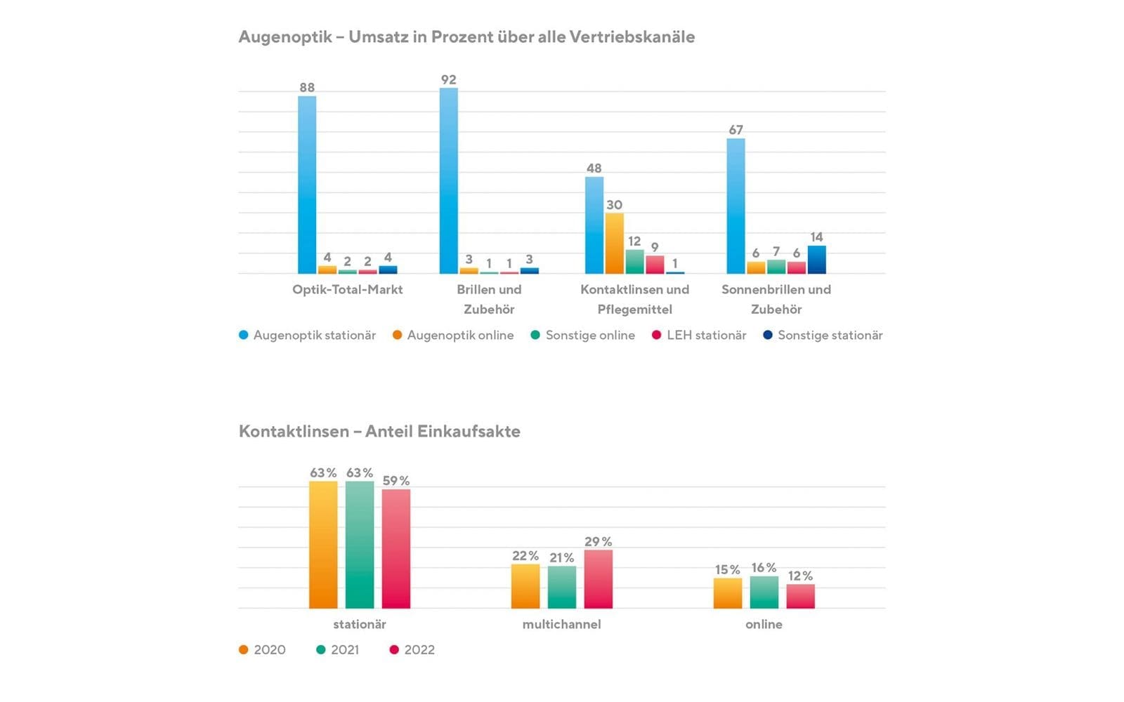 Vor diesem Hintergrund stieg der gesamte Branchenumsatz im Vergleich zum Vorjahr um weitere 2% an und liegt nun bei 6,7 Milliarden € (inklusive MwSt.). Die reine Brillenoptik entwickelt sich mit einem Plus von 0,3% deutlich schwächer, allerdings ist der Online- und Multichannel-Umsatz um 5% rückläufig, der rein stationäre Brillenoptikumsatz wächst leicht.